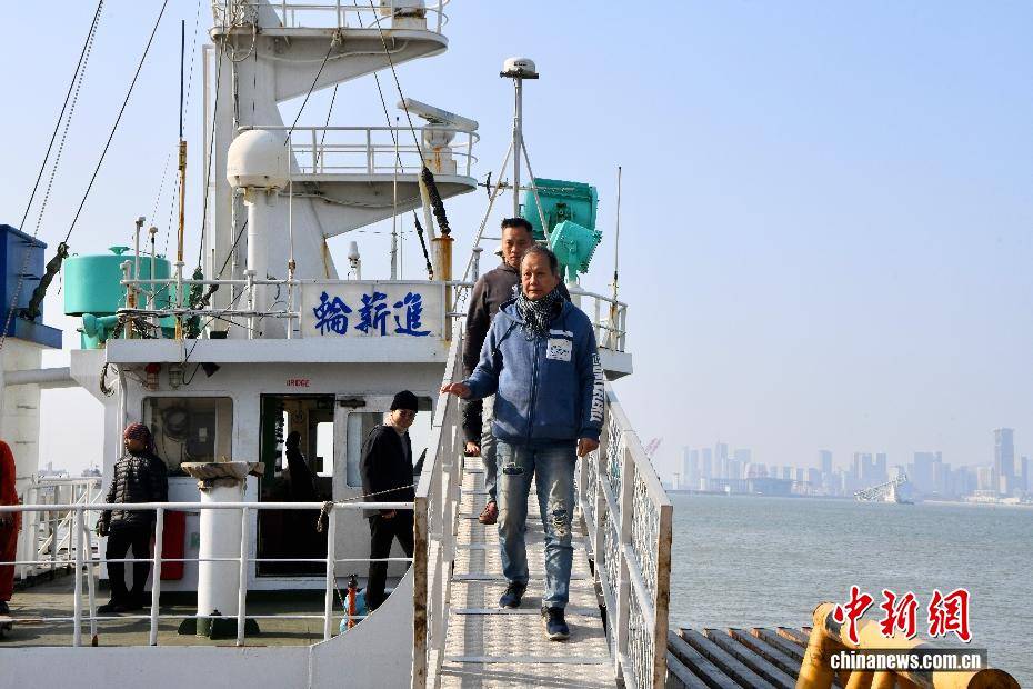 2月3日,伴随着2026年春运的启动,福建厦门海翔码头迎来厦金“小三通”货运航线春运首班互通班轮“进薪轮”。厦门东渡边检站移民管理警察高效办结边检手续,同步送上春联、中国结等新春礼包,以“零延时通关+温情服务”双重保障,拉开两岸年货物资跨海流通的温暖序幕。不远处的“闽台船员驿站”内,两岸同胞围坐畅谈,“两岸一家亲,闽台亲上亲”的心声道出共同期盼,驿站内政策咨询专窗、绿色通道与闽南乡音服务,让台湾船员真切感受到“家的温暖”。自厦门翔安至金门新货运通道开通以来,凌晨还在福建宁德海域活蹦乱跳的深海大黄鱼,上午即抵厦门海翔码头装船,经边检“零延时”通关,当晚便能鲜抵台湾餐桌,这是两岸民生相通、经济相融的鲜活脉搏。图为台湾船员下船准备前往“闽台船员驿站”。中新社记者 摄