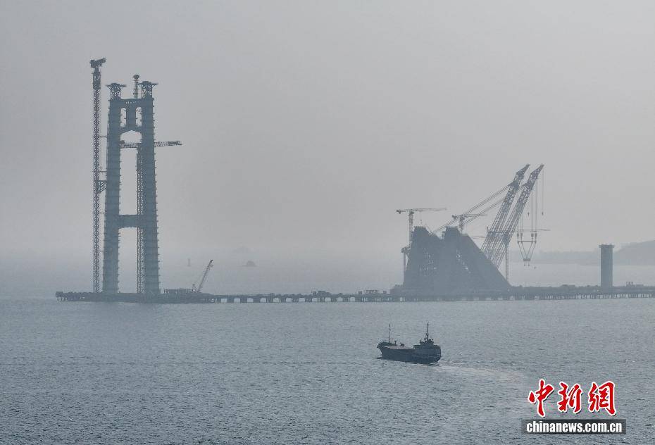 2月3日,伴随着2026年春运的启动,福建厦门海翔码头迎来厦金“小三通”货运航线春运首班互通班轮“进薪轮”。厦门东渡边检站移民管理警察高效办结边检手续,同步送上春联、中国结等新春礼包,以“零延时通关+温情服务”双重保障,拉开两岸年货物资跨海流通的温暖序幕。不远处的“闽台船员驿站”内,两岸同胞围坐畅谈,“两岸一家亲,闽台亲上亲”的心声道出共同期盼,驿站内政策咨询专窗、绿色通道与闽南乡音服务,让台湾船员真切感受到“家的温暖”。自厦门翔安至金门新货运通道开通以来,凌晨还在福建宁德海域活蹦乱跳的深海大黄鱼,上午即抵厦门海翔码头装船,经边检“零延时”通关,当晚便能鲜抵台湾餐桌,这是两岸民生相通、经济相融的鲜活脉搏。图为载着大黄鱼的“进薪轮”离开厦门海翔码头前往金门,前方就是正在修建的厦金大桥(厦门段)。(无人机照片)中新社记者 摄